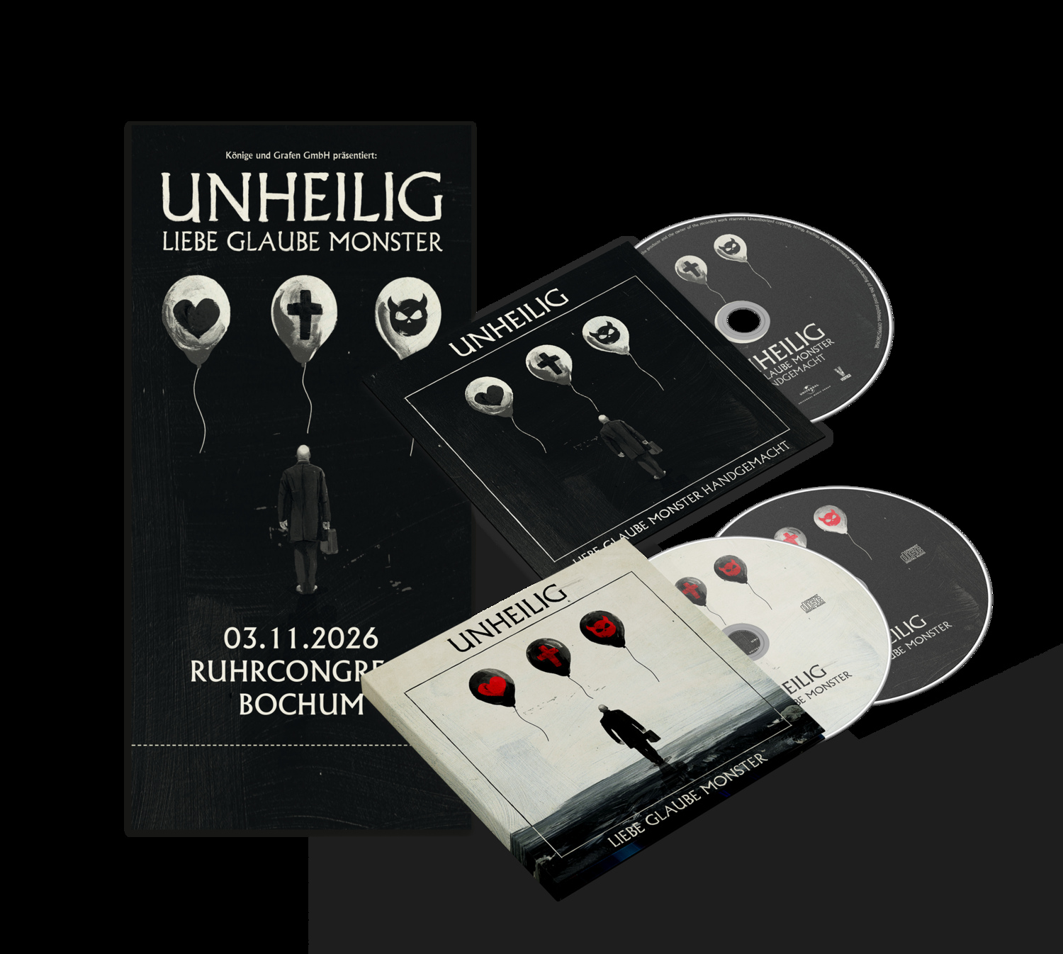 10 Titel aus dem Album „LIEBE GLAUBE MONSTER“ im unheiligen akustischen Gewand auf einer CD gehören zu dem Ticket Bundle. Diese CD ist streng limitiert nur in diesem Bundle erhältlich.